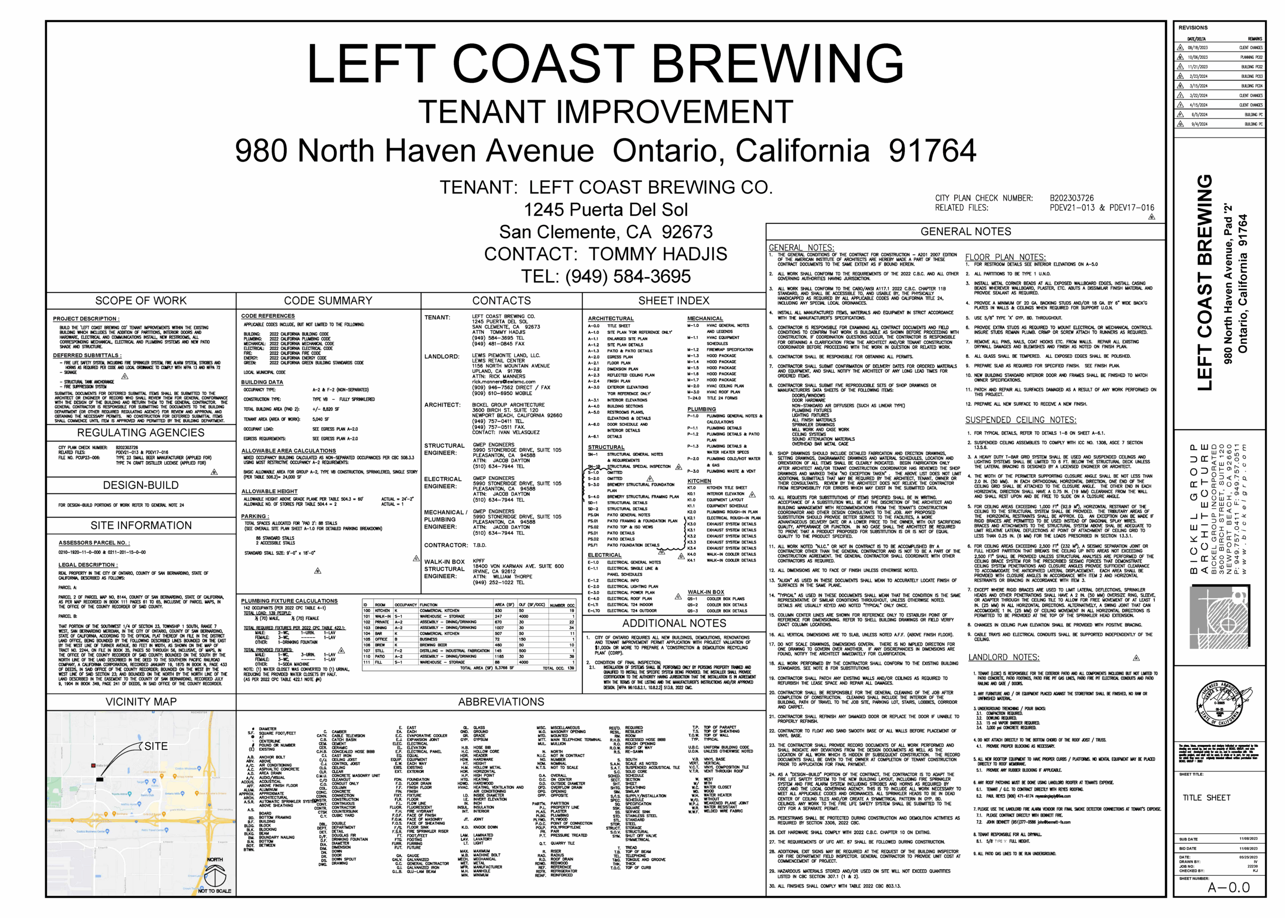 This project consisted of a new +/-8,820 square foot tenant improvement for the Left Coast Brewery. The project included new wall & glazing partitions, (2) restrooms, commercial kitchen, main bar, a walk-in cooler, (2) separate interior and exterior dining areas and a third private dining area. All the corresponding mechanical, electrical and plumbing improvements required.